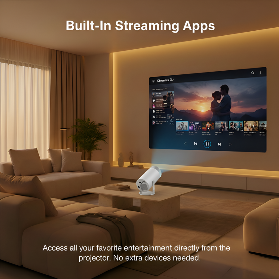 With built-in Android, you can download and use streaming apps right on the projector — no Fire Stick, no laptop, no messy cables. Just connect to WiFi and start watching.